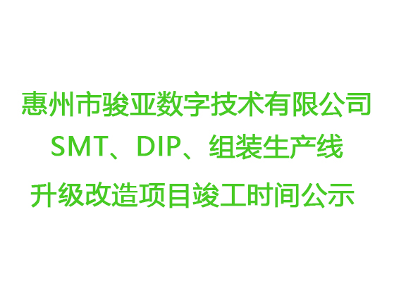 惠州市駿亞數字技術有限公司SMT、DIP、組裝生產線升級改造項目竣工時間公示